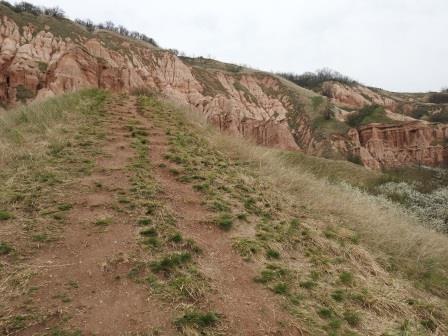 De la punctul de belvedere am putut identifica 3 cărări care duc până lângă stânci și am decis să mergem și pe acestea pentru a explora cât se poate de mult din acest obiectiv. Asta a însemnat că Râpa Roșie a rămas singurul nostru obiectiv pe ziua respectivă, dar nu regretăm deloc.