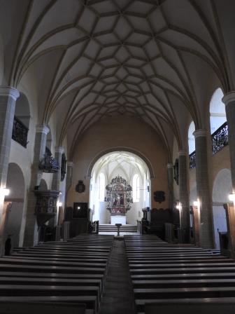 Bazilica romanică a fost transformată în biserică evanghelică în 1526 odată cu aducerea scrierilor lui Martin Luther în Transilvania de către Johannes Honterus, iar toată pictura de pe pereți a fost acoperită. Biserica evanghelică are dimensiuni impresionante măsurând la interior aproximativ 46,25m lungime, 19m lățime și 12m înălțime.