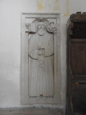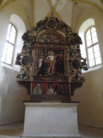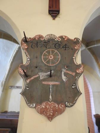 Partea sudică a absidei are încastrată piatra funerară a preotului Paul Wohner care a decedat în anul 1639 la vârsta de 63 de ani.