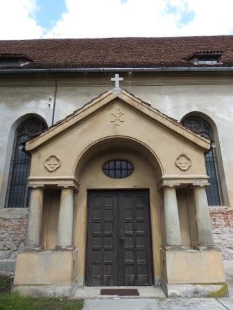 Incendiile din anii 1685 și 1701 au distrus biserica din construcția inițială rămânând doar portalul de vest (din păcate nu m-am gândit să fotografiez și partea exterioară a acestuia).