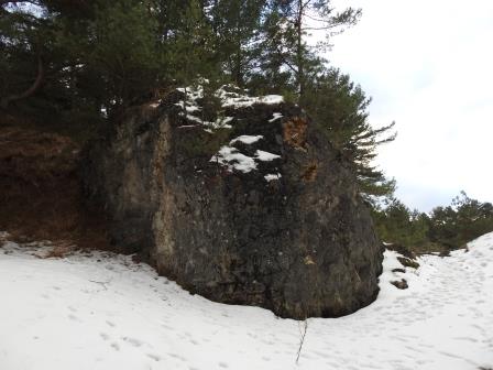 De aici, urmând cărarea prin pădurea de pini se începe urcarea spre aria protejată. Traseul începe de la o altitudine de aproximativ 599 m și ajunge până la altitudinea de 720 m, care este altitudinea la care se găsește blocul de calcar.