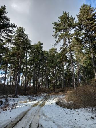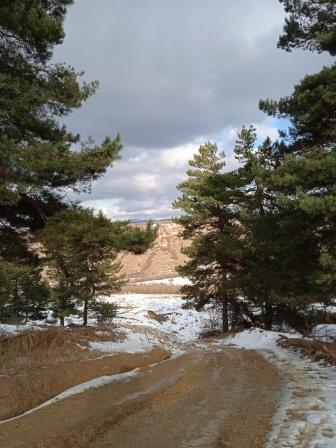 După ce ieșiți din pădurea de pini, o să vedeți o movilă pe partea dreaptă (ca în fotografia de mai jos), iar după aceasta trebuie să urmați drumul ce urcă spre partea dreaptă.
