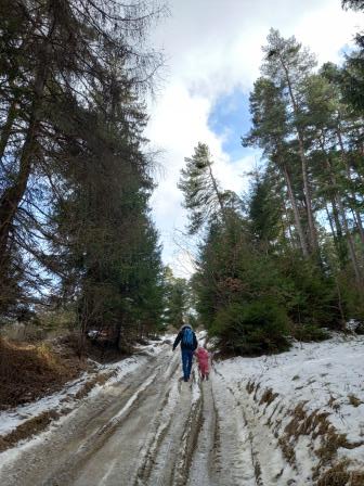 După ce am construit un mic om de zăpadă, cu greu pentru că zăpada nu era foarte bună pentru această activitate, am început coborârea, mai ales că deja se însera.