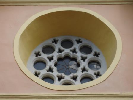 Pe tavanul corului este reprezentat ochiul lui Dumnezeu încadrat într-un triunghi, iar pe cele două arcade alăturate sunt reprezentați simbolic cei 4 evangheliști: omul ca simbol al Sfântului Evanghelist Matei, leul ca simbol al Sfântului Evanghelist Marcu, vițelul ca simbol al Sfântului Evanghelist Luca și vulturul ca simbol al Sfântului Evanghelist Ioan.