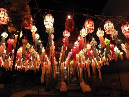 După ce am luat cina la târg, ne-am îndreptat spre hotel pentru a lăsa ce suveniruri mai cumpărasem și pentru a întreba unde se ține Revelionul în oraș pentru că citisem că la una din porțile orașului (Tha Phae Gate), în noaptea trecerii dintre ani se ridică lanterne de către localnici. Noi nu am văzut localnici ci doar o sumedenie de turiști. Într-adevăr spectacolul înălțării lanternelor a fost foarte frumos. Efectiv cerul a fost plin de lanterne. Nu se vede exact din poze cât de frumos a fost (pentru noi cel puțin). La ora 12 am ciocnit cu vin de orez luat de la 7Eleven.