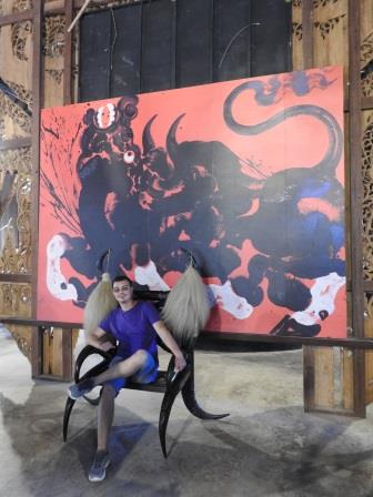 După plimbărica de 10 minute (cred că nici atât de fapt) cu boii a urmat plimbarea cu elefantul. Ăsta a fost obiectivul pentru care am cumpărat excursia respectivă, dar cred că nu am ajuns chiar unde trebuie. De ce zic asta? Păi călăritul a fost precedat de un fel de spectacol de prost gust în care elefanții trebuiau să se joace fotbal, să deseneze și să danseze. Da, a fost foarte interesant să vedem că un elefant poate desena atât de bine, dar spectacolul în sine ne-a lăsat un gust destul de amar. Și nu doar nouă. Erau destul de puține persoane care aplaudau. La final aveai posibilitatea să cumperi unul din desenele realizate de acei elefanți. În timpul plimbării cu elefantul iarăși au mai fost două aspecte care ne-au picat prost: forțatul turiștilor să cumpere banane pentru elefanți (erau vreo 2-3 opriri la care ți se băgau sub nas banane la supra-preț pentru a hrăni elefantul) și faptul că elefantul de sub noi și-a luat un ciocan în cap de am auzit efectiv sunetul oaselor pentru că a făcut un pas pe lângă potecă.