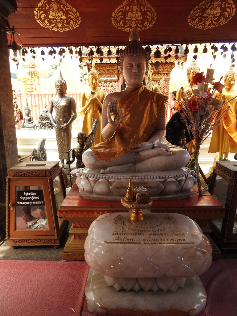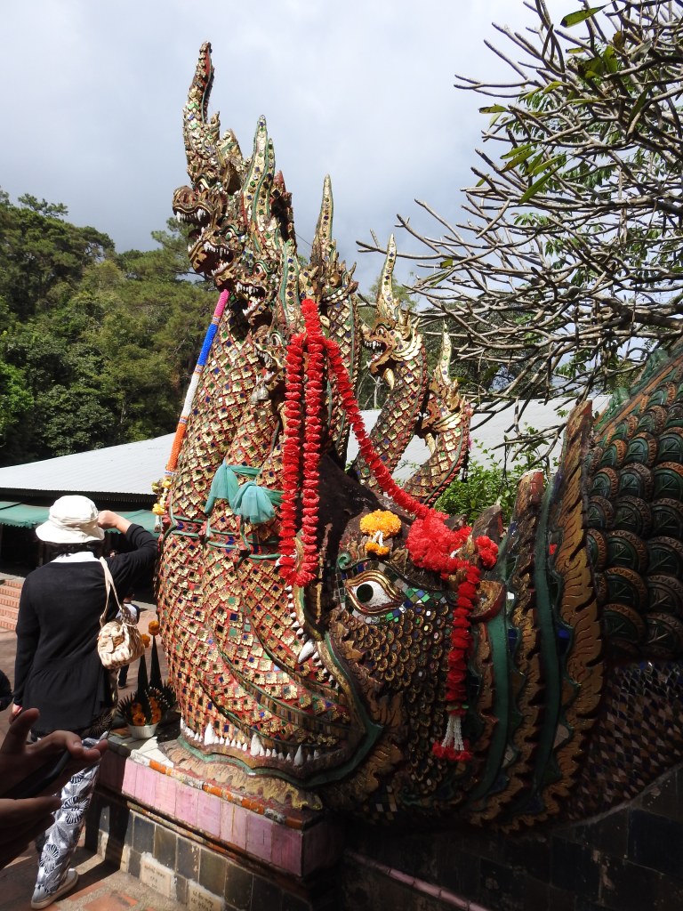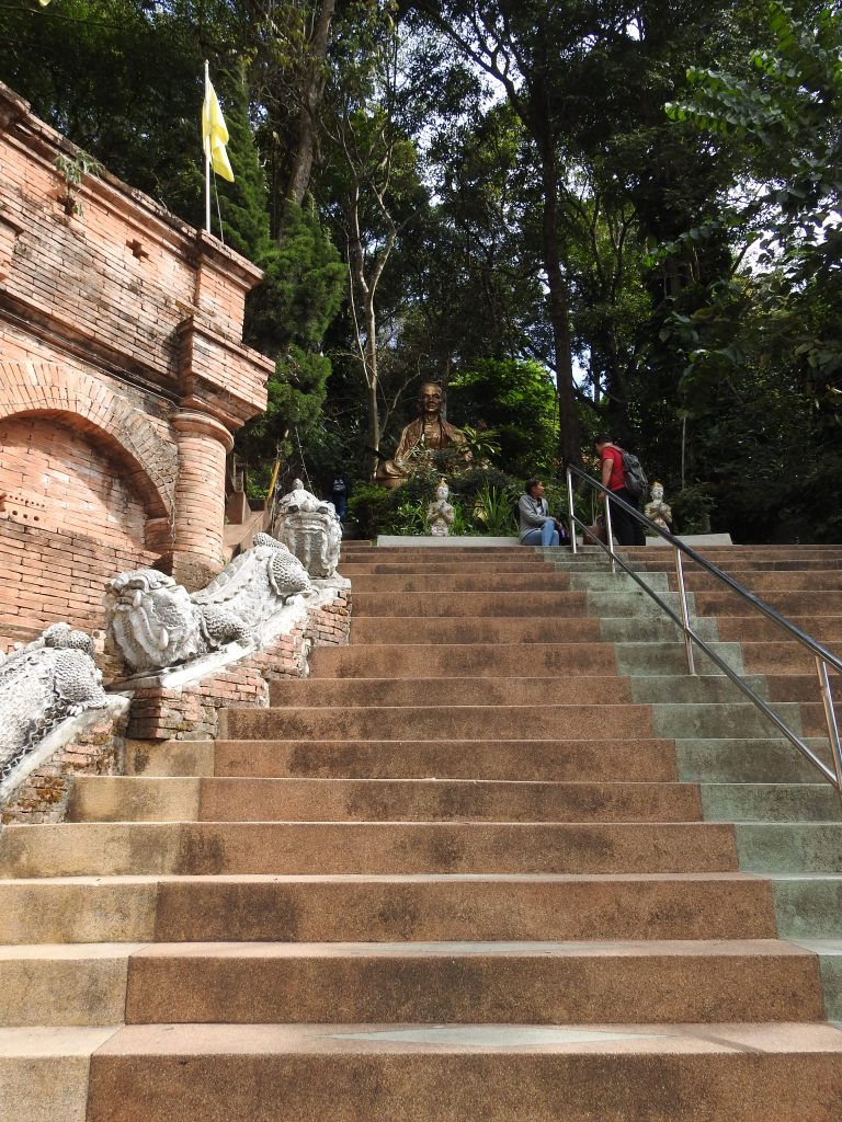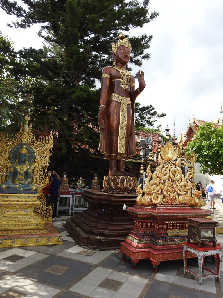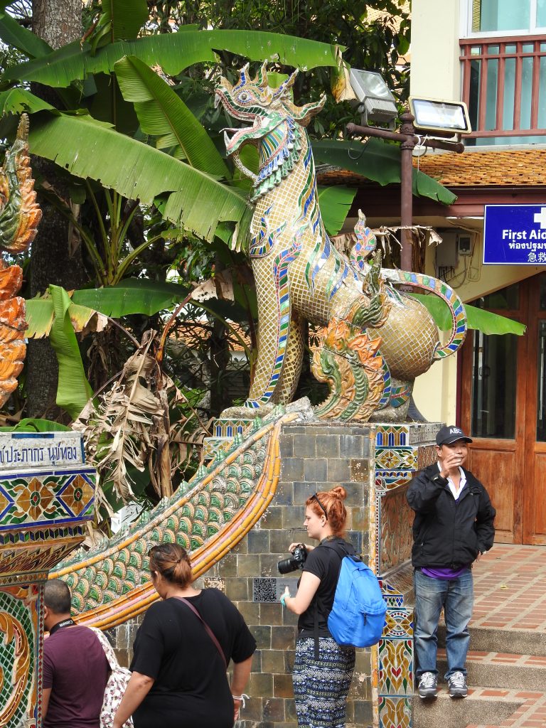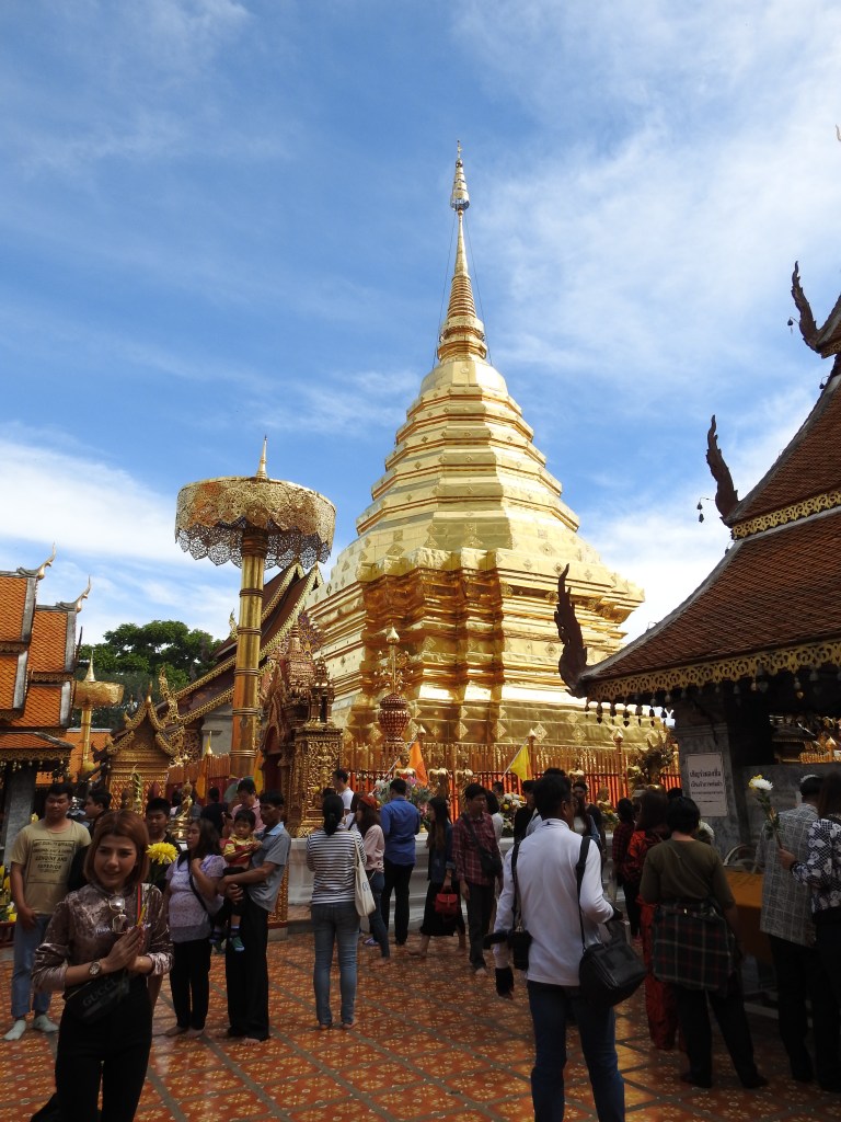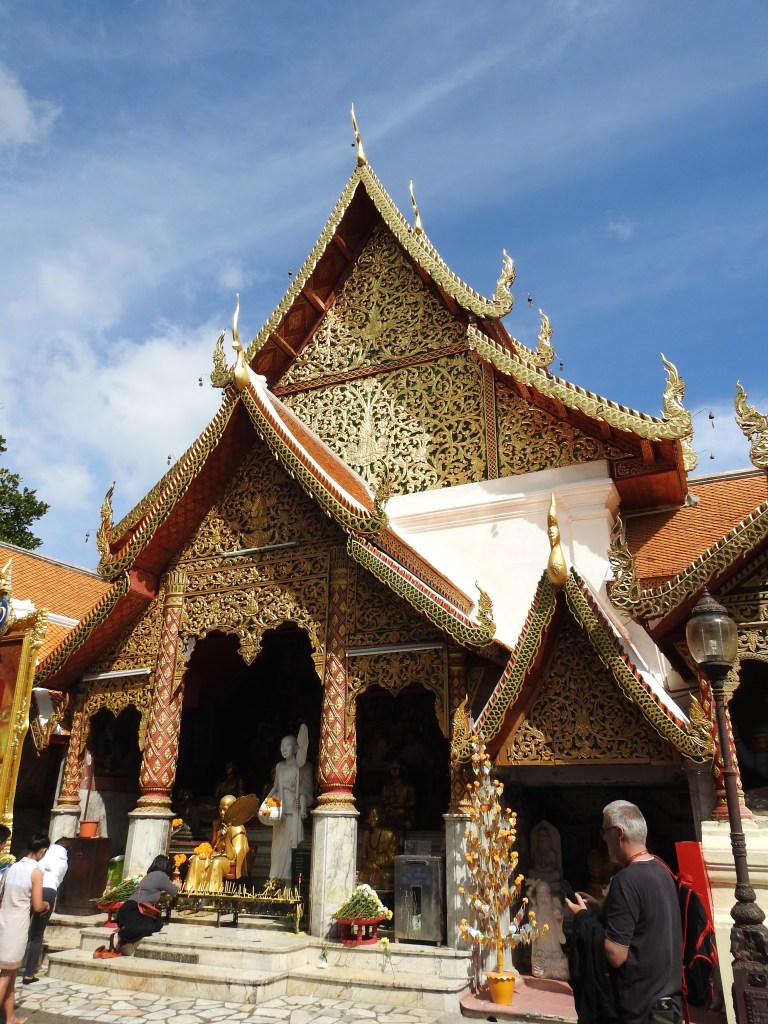 Wat Doi Suthep este situat la 15 km de oraș și la o altitudine de 1073 m pe muntele Doi Suthep oferind o priveliște frumoasă asupra orașului. Ca să ajungem la acest templu a trebuit să ieșim din “pătrățel” și să luăm un songthaew spre universitate pentru 30 baht/persoană, iar de la universitate sunt curse regulate de songthaew spre Wat Doi Suthep. Din parcarea templului se vor urca 309 trepte până se ajunge la templu printre cele două naga balustrade, cele mai lungi din Tailanda.