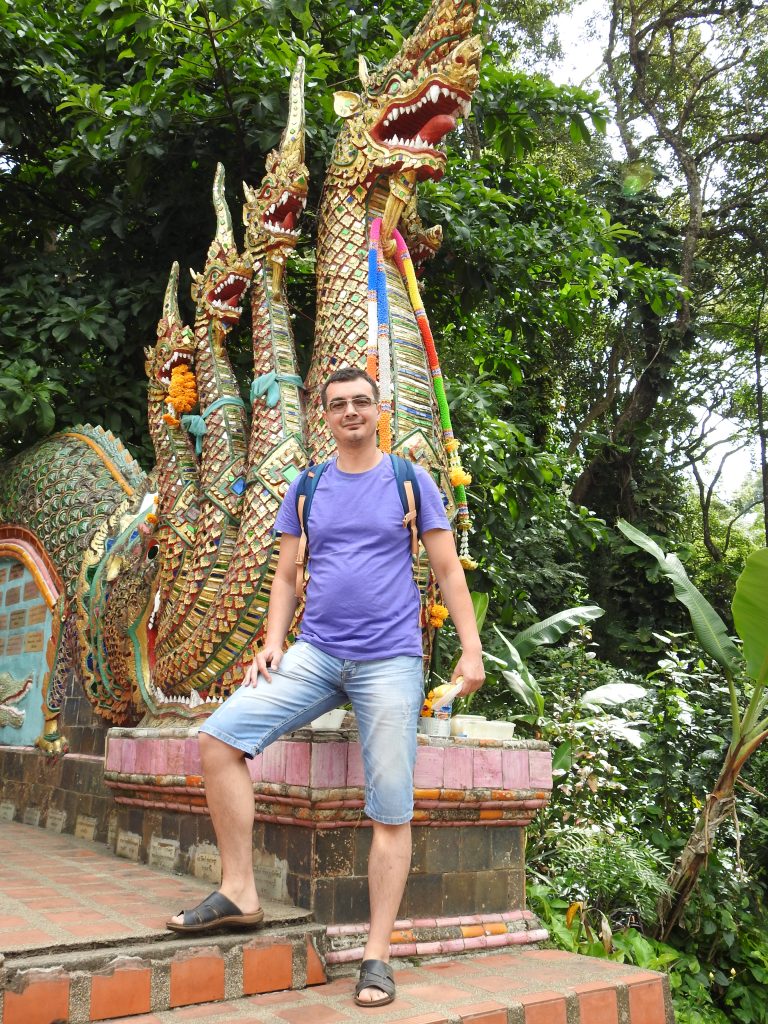 După 2 zile de excursii ne-am decis să luăm o zi de pauză și să vizităm templul de îl vedeam zilnic de la fereastra hotelului (Wat Doi Suthep) și să mergem la Tiger Kingdom să putem și noi zice “uuuuu, ne-am tras în poză cu tigrul”.