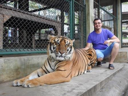 Scump. Foarte scump. Nu mai șiu exact care tigru cât a fost, țin minte doar că am lăsat 3000 de Baht acolo. Aș fi vrut și la bebe tigru, dar ne trebuiau bani de mașină să ne putem întoarce la hotel. Bineînțeles că am uitat să-mi încarc aparatul foto daaaar, noroc cu power bank-ul primit cadou de Crăciun de la sora mea. Cât s-a încărcat camera am stat pe bancă în fața încăperii cu pui de tigru și ne-am uitat la niște copii cum se jucau cu ei. La Tiger Kingdom am înțeles de ce Tailandei i se spune Țara zâmbetelor: toți angajații zâmbeau frumos încontinuu și păreau a fi într-adevăr fericiți, deci mă gândesc că sunt plătiți bine. În rest zâmbetele se stingeau când te îndepărtai de tailandezul cu care avusesei treabă.