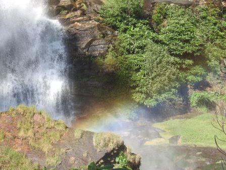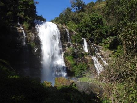 Prima oprire a fost la Cascada Wachirathan, o cascadă cu o cădere de apă de 80 m înălțime (conform ghidului, deși mie mi s-a părut mai mică) pe râul Klang. Vuiet, stropi răcoritori, curcubeie, atmosferă liniștitoare. Dacă nu vreți să vă udați puteți să vă luați cu voi pelerină de ploaie și să aveți ceva protecție pentru electronice (cum ar fi camera foto). Nouă nu ni s-a părut așa deranjant, dar au fost alte persoane cărora nu le-au convenit cei câțiva stropi de apă.