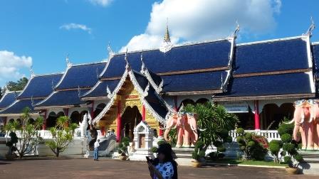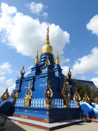 Ultima oprire a excursiei a fost la Templul Albastru (The Blue Temple). Așa ne-a zis ghidul cel puțin și aici a apărut eroarea de comunicare. The Blue Temple era pe lista mea de acasă și vroiam să luăm pentru a doua zi o excursie care să acopere acest templu și Templul Alb (the White Temple) așa că, nu ne-am dat interesul să vizităm templul cum trebuie deoarece urma ( în viziunea noastră) să îl vedem iar a doua zi. De fapt acest Templu Albastru nu era cel de pe lista mea de “to see”. Acest templu este the Blue Temple of Chiang Mai și ce aveam eu pe listă era the Blue Temple of Chiang Rai. Când vom ajunge iar în Tailanda și în special în zona Chiang Mai acest templu va fi prioritatea mea numărul 1 deoarece este un templu foarte frumos, pe care nu l-am găsit ca sugestie pe internet. Numele templului, am aflat de la cel de la care am cumpărat excursiile, este Wat Ban Den.