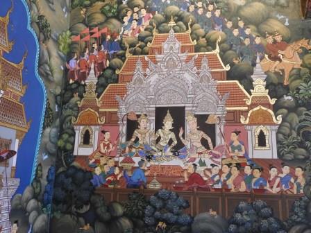 Pentru a ajunge la clădirea principală a templului (ubosot) se traversează un pod peste un mic lac, pod ce reprezintă renunțarea la lăcomie, ispită și dorință. Aceste dorințe umane sunt figurate de mâinile întinse situate de o parte și de alta a potecii. Pe malul lacului se găsesc și două Kinnaree (creaturi jumătate om-jumătate pasăre din mitologia budistă). După renunțarea la dorințele umane se trece prin ”poarta cerului” păzită de Rahu, cel ce decide soarta morților. Se ajunge astfel la ubosot, unde te frapează trecerea de la exteriorul alb și imaculat al templului la interiorul plin de culoare, foc și demoni. Pictura este extrem de modernă stilul nemaîntâlnindu-se în nici un alt templu: reprezentări ale atacului asupra turnurilor gemene din SUA, Neo din filmul Matrix, Superman, reprezentări ale războiului nuclear, Harry Potter, Hello Kitty, minioni, kung fu panda etc. sunt doar câteva din repezentările întânite pe pereți. Interiorul templului este interzis a fi fotografiat (deși se găsesc pe internet imagini cu interiorul) fiind foarte mulți supraveghetori care să se asigure că această regulă impusă de pictor nu este încălcată. Un alt mic dezavantaj este faptul că nu prea poți să admiri în voie arta deoarece sunt așa de mulți vizitatori că ești zorit mereu de paznici cu megafoane să înaintezi.