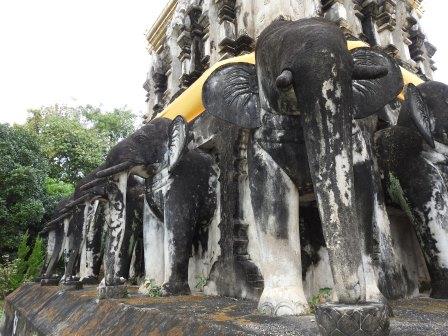 Templul Elefanților (Temple of the tethered/shackled elephant) nu era în intinerariul nostru, dar fiind în drumul nostru spre Wat Phan Tao am decis să intrăm repede și aici mai ales că am văzut că este plin de statuete cu elefănței. Numele de Lam Chang al templului provine de la faptul că pe acel loc erau ținuți elefanții regelui.