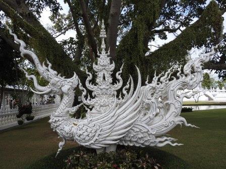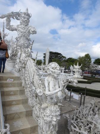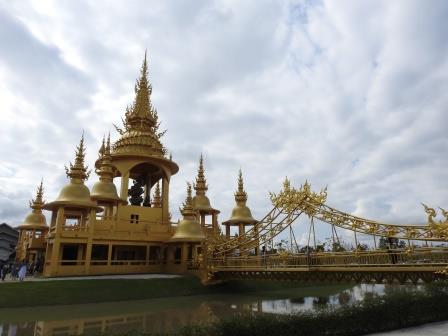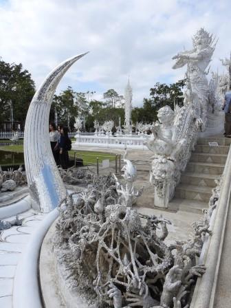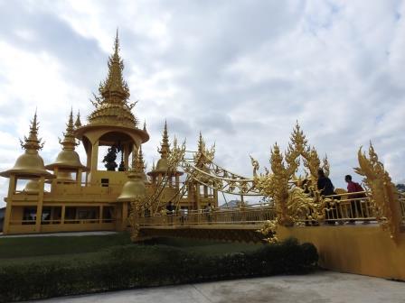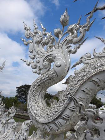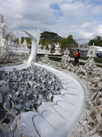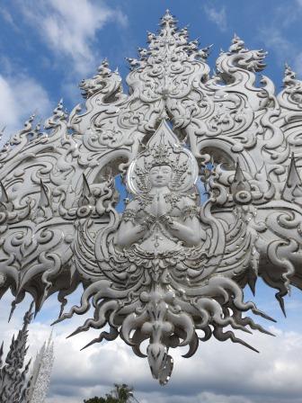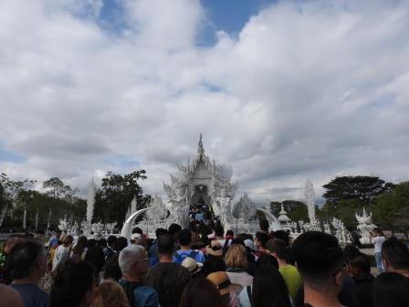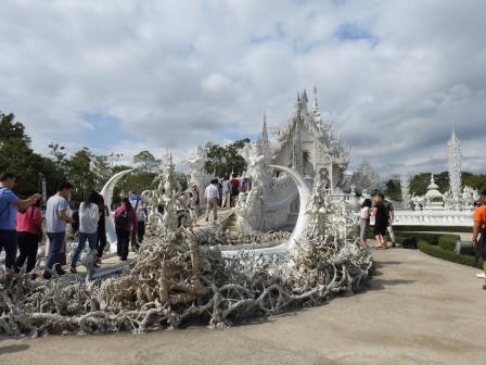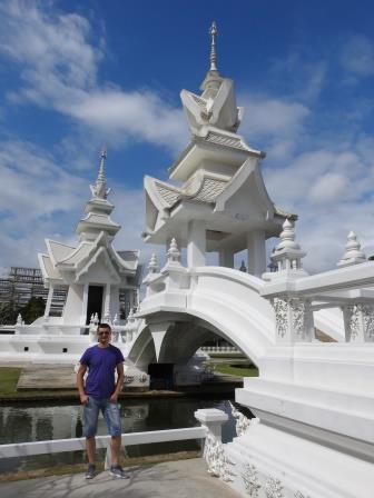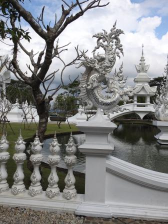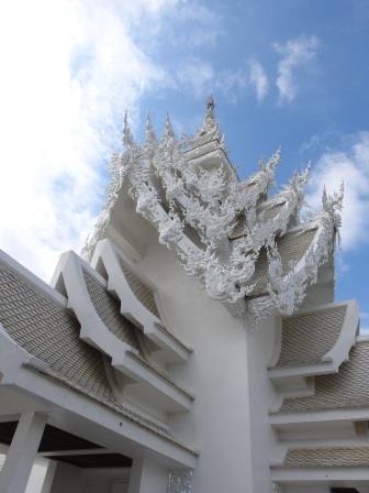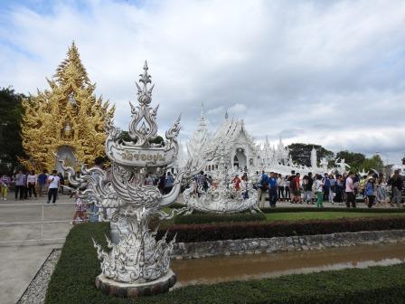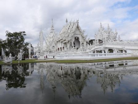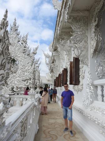 Următoarea oprire a fost la, din punctul meu de vedere, cel mai frumos templu al Tailandei. Fiecare are farmecul său, dar Wat Rong Khun (The White Temple – Templul Alb) a fost excepțional de frumos. Wat Rong Khun este proprietatea personală și proiectul de o viață a pictorului tailandez Ajarn Chalermchai Kositpipat. Proiectul templului a început în anul 1997, Chalermchai dorind să readucă în lumină arta tailandeză care a început să decadă. Viziunea contemporană a artistului asupra artei i-a adus inițial numeroase critici și opoziții în rândul tailandezilor. Nedorind să aibă de a face cu pretențiile marilor donatori care i-ar putea infleunța arta, Chalermchai s-a chinuit să construiască totul din bani proprii sau din donații mai mici de 10.000 baht (aproximativ 273 Euro). Construcția templului este încă în desfășurare, finalitatea lucrării fiind estimată pentru anul 2070 și urmând a avea nouă clădiri. Pentru a se asigura că templul este finalizat, pictorul își pregătește discipoli care să continue construcția în stilul dorit de el după ce el va înceta din viață.