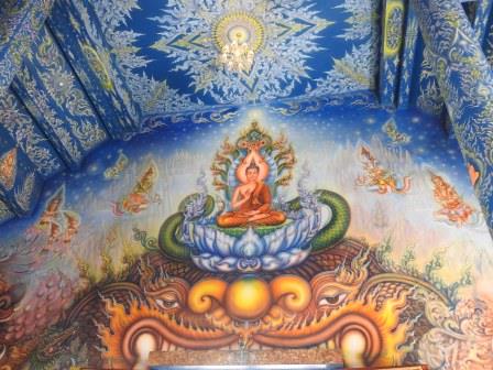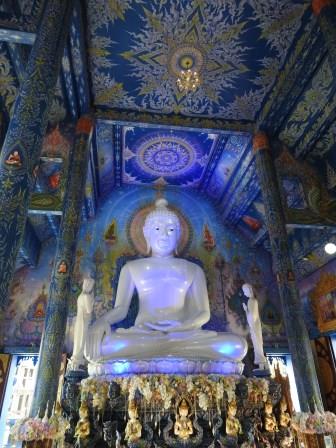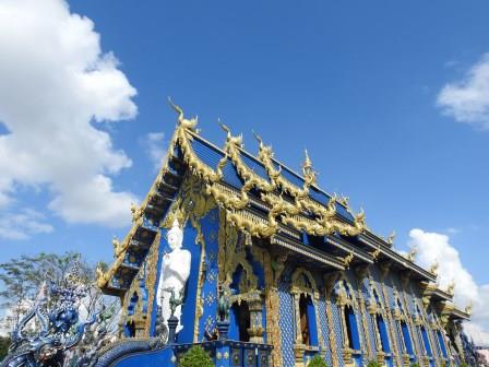 Un alt templu modern și unic, în culori de albastru, alb și auriu este Wat Rong Seua Ten (The Blue Temple – Templul Albastru). Temple of the Dancing Tiger a reprezentat al treilea obiectiv al excursiei și este un templu proiectat de Putha Kabkaew, unul din studenții lui Chalermchai motiv pentru care se observă anumite similarități. Construcția templului s-a realizat pe locul unui templu antic și a fost începută în 2005. În 2016 a fost finalizată construcția clădirii principale a templului. Interiorul este pictat în nuanțe de albastru pentru a simboliza liniștea, înălțarea, infinitul, puritatea și vindecarea budismului, iar statuia de porțelan alb reprezentându-l pe Buddha are o mână îndreptată spre pământ ca o reprezentare a momentului în care a atins iluminarea. Ieșirea din ubosot se face printr-o ușă ce are cadrul înconjurat de o pictură ce reprezintă gura căscată a unui demon. În spatele templului se găsesțe o statuie tot albă a lui Buddha în poziție abaya-mudra.