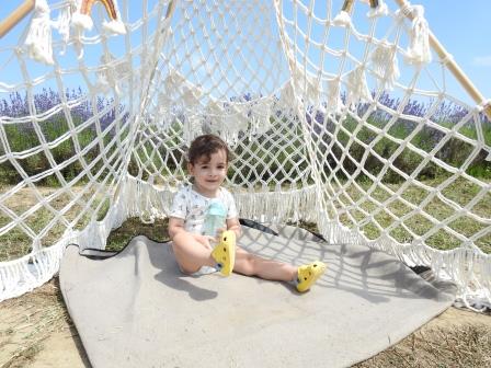 Lui Victor i-a plăcut foarte mult și faptul că nu a trebuit să împingă căruciorul cu Andrei la deal 🤣. De la parcarea amenajată pentru turiști până la lanul de lavandă se merge pe loc drept preț de vreo 5 minute. Atenție: pinul pe GoogleMaps este pus greșit, dar se vede indicatorul spre lavandă.