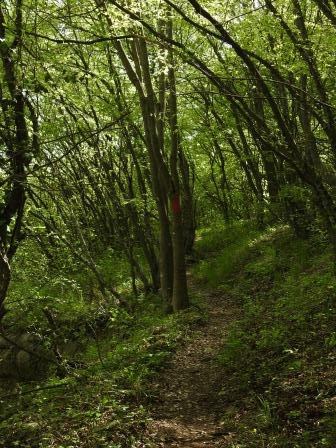 Spre stânga am văzut cărarea marcată cu bandă roșie și am decis să mergem puțin să vedem ce e atât de secret la ea. Am urmat cărarea până am ajuns la o răscruce cu indicator în bulgară. Nu am înțeles ce scrie, dar am înțeles 40 ‘, adică 40 de minute de mers de oameni fără copii. Cum deja era aproape ora 15:00, am zis că nu ne riscăm să mergem 1 oră dus și 1 oră întors și ne-am întors la fortăreață. Deci “The secret path” a rămas secretă pentru noi 😅.