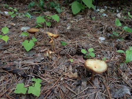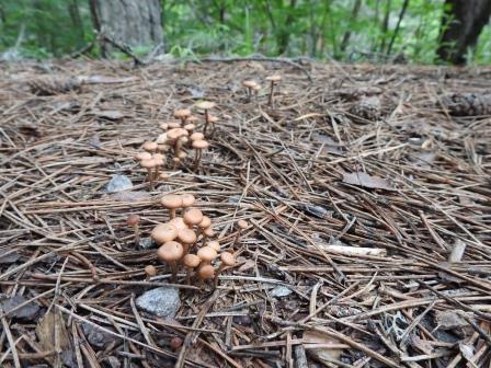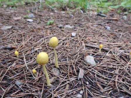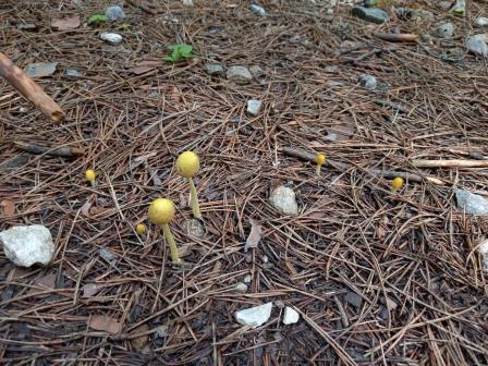 Multe ciupercuțe și un gușter le-am observat pentru că mi le-a arătat fetița. De exemplu, ciupercuțele galbene din pozele ce urmează, ar fi sfârșit călcate dacă nu mi le arăta Ruxy.