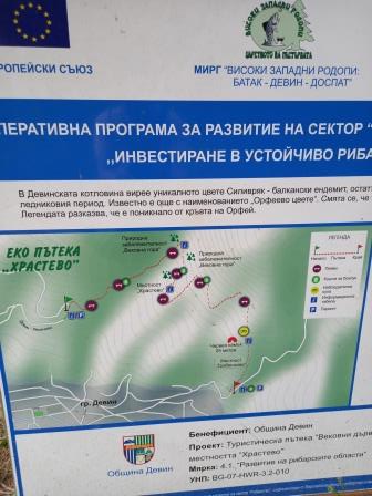 Eco-poteca Hrastevo este o potecă extrem de pitorească situată în Munții Rodopi, lângă orașul Devin, Provincia Smoljan. Poteca este una foarte ușoară și are ca destinație punctul de belvedere Cherven Kamak (Cherven Kamak Viewpoint pe GoogleMaps).