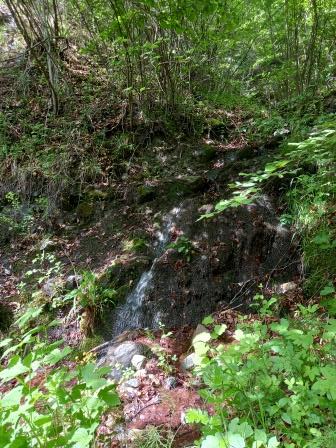 La un moment dat ajungem și la o cascadă mică, dar nu este cea căutată. Este și un izvor mic lângă un copac, dar nu am îndrăznit să încercăm apa de aici (am băut de la izvorul de la barieră fără să avem nici o problemă).