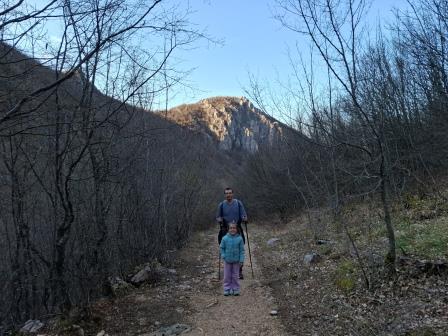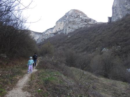 După ce ne-am echipat de drumeție cu genunchere, bețe de trekking, rucsac port-bebe, gustări etc. și am admirat stâncile de la începutul traseului, am pornit la drum. Drumul dinspre stânga ca să fie clar 😁.