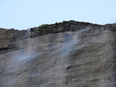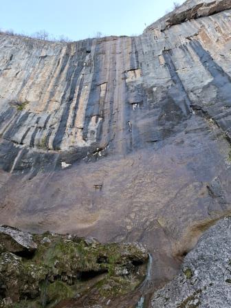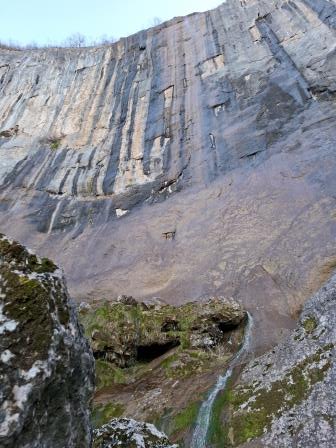 După aproape 15 minute ajung la cascadă 🥰. Da, nu are debit mare deloc, dar îmi place chiar și așa . Să fii la baza stâncii ăleia verticale de peste 140m este extraordinar 😍. În vârf abia se vede puțină apă care se prelinge pe peretele stâncos ajungând ca la baza stâncii să se formeze o cascadă mică. Liniștea mi-a fost întreruptă doar de apelul lui Victor care m-a anunțat că el o să înceapă coborârea cu copiii până mă întorc și că îmi lasă în drum rucsacul de bebe să îl iau când cobor.