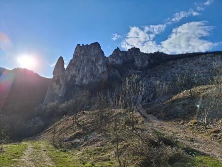 Traseul, în prima parte, este lejer și ușor ascendent. Stânci extraordinare ne-au acompaniat urcarea și mii de flori de spânz (Helleborus), toporași (Viola odorata), brebenei (Corydalis solida ssp. Slivenensis) și viorele (Hepatica transsilvanica) 🥰.