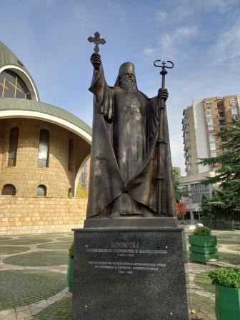 Vizavi de biserica ortodoxă se află Statuia Sfântului Clement de Ohrid (macedoneană: Споменик Свети Климент Охридски). Din păcate nu am găsit nici un fel de informații despre această statuie.