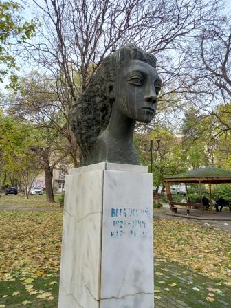 Ne-am oprit puțin la Monumentul Vera Jocikj (macedoneană: Споменик Вера Јоциќ; eng: Monument Vera Jocikj), partizană ce a fost declarată eroină națională la 1951 pentru faptele sale în bătăliile de la Drenovik, Pelinac, Ristovac și Lisec (unde Batalionul 3 din care făcea parte Vera reușește să spargă rândurile armatei bulgare ce înainta spre Muntele Ograzhden). În bătălia de la Lisec de la 20 mai 1944, Vera a fost grav rănită și își pierde viața trei zile mai târziu. Statuia din Parcul Francofoniei a fost realizată de Vida Jocikj, sora Verei.