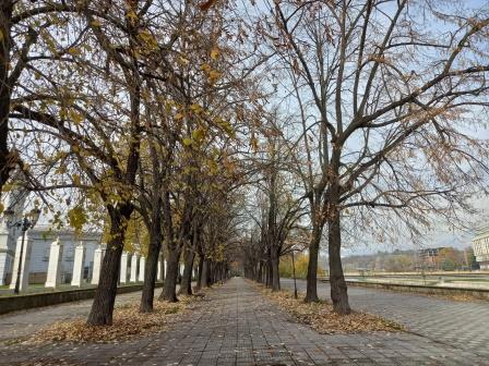 După ce copiii s-au distrat puțin cu niște conuri de Cedrus atlantica (CRED că este această specie de conifere), iar noi am admirat această specie de arbore nemaivăzută de noi până acum, ne-am hotărât să plecăm mai departe și să mergem prin spatele clădirii, spre Podul cu Lei (Podul Goce Delchev). Ne-am întâlnit și cu 2 gardieni, unul tânăr și unul mai în vârstă. Cel tânăr ne-a ignorat cu desăvârșire, în schimb cel mai în vârstă a ținut să ne menționeze că acolo este clădirea Guvernului și trebuie să plecăm pentru că nu avem voie să staționăm 🤨.