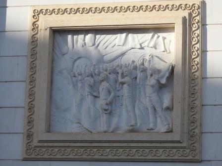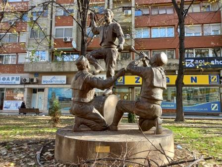 Ajungem la Monumentul Eliberatorilor din Skopje 13.11.1944 (macedoneană: Споменик Ослободители на Скопје 13.11.1944; eng: Liberators of Skopje Monument). Monumentul a fost realizat în anul 1955 de către scultorul Ivan Mirković și este dedicat eroilor care au reușit eliberarea Skopjei de sub nemți la 12 – 13 noiembrie 1944.
