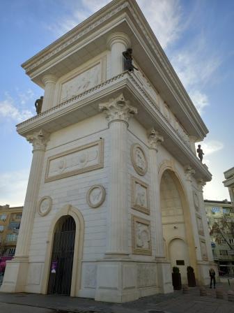 “Poarta Triumfală” a fost inaugurată în anul 2012 și are o înălțime de 21m. Pe suprafața exterioară a porții se regăsesc diverse reliefuri reprezentând evenimente din istoria Macedoniei. Pe lângă basoreliefurile cu scene istorice, pot fi observate și reliefuri cu motive populare și 4 statui de bronz în partea superioară a porții.