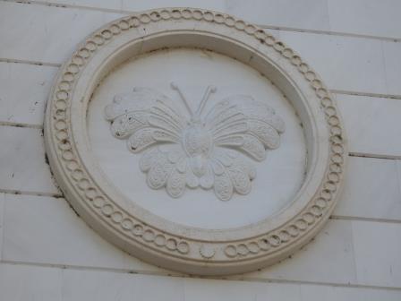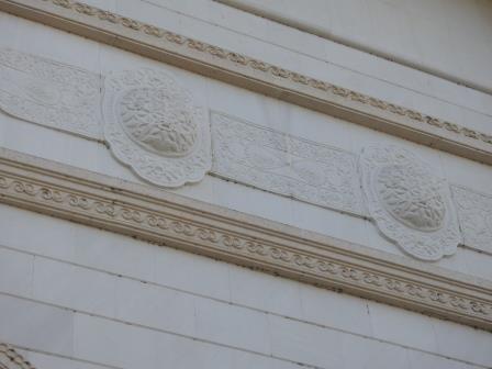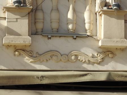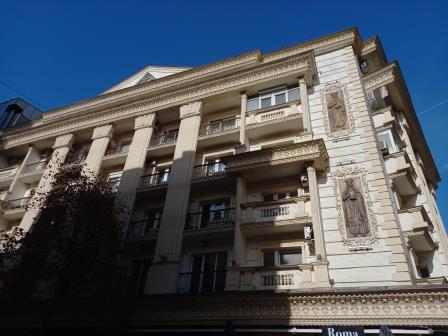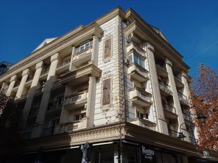 Admirăm o ultimă fațadă de clădire înainte de Piața Macedonia.