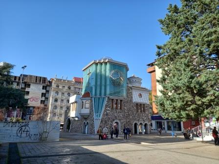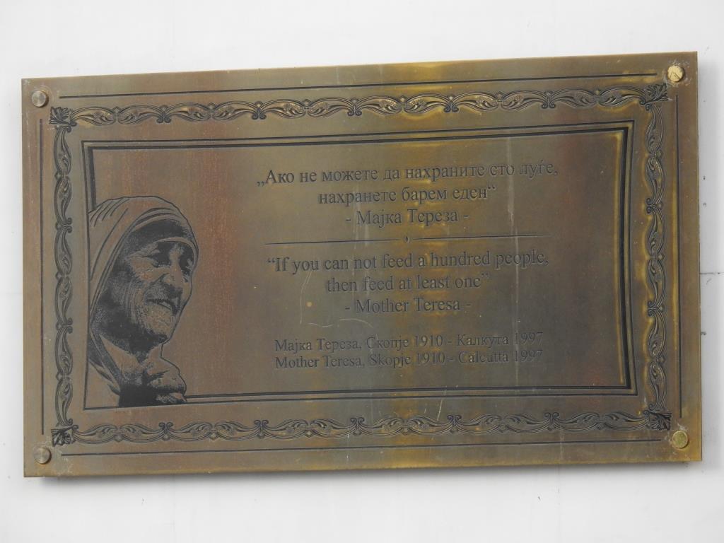 Ne-am reîntors în Strada Macedonia și am mers la Casa Memorială a Maicii Tereza (macedoneană: Спомен-куќа на Мајка Тереза; eng: Mother Theresa Memorial House). Bineînțeles că nu este casa originală a sfintei. Se vede și din designul clădirii, dar tot este interesant să vezi acest loc.