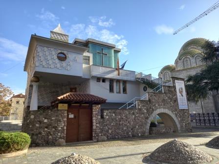 Vizavi de clădirea nr. 4 – Roma eiscafè, se află Biserica Sfinții Constantin și Elena (macedoneană: Црковен храм “Свети Константин и Елена”; eng: Church of Saint Constantine and Helena), biserică aflată încă în construcție, dar exteriorul arată bestial 😍.