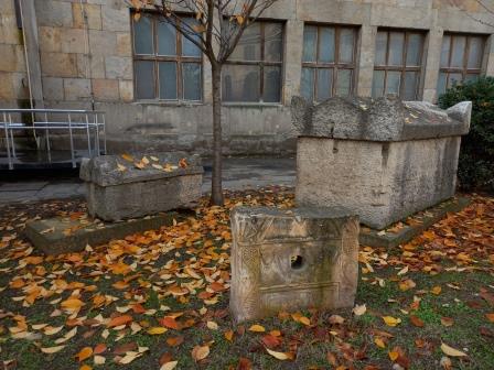 După ce am luat micul dejun, pentru care de obicei cumpărăm produse de la vreun supermarket, am plecat să vizităm Muzeul orașului Skopje (macedoneană: Музеј на град Скопје; eng: Museum of the City of Skopje). Din păcate, deși am ajuns la ora 11:00 muzeul, care ar fi trebuit să fie deschis de la 09:00 la 17:00, era cât se poate de închis. Am fotografiat niște pietre de mormânt și sarcofage expuse în fața muzeului și am mai așteptat puțin că poate ne deschide cineva. Noope…
