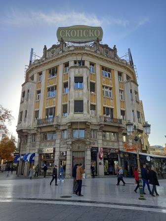 Clădirea Adunării Republicii Macedonia a fost construită la 1938 după planurile arhitecților Viktor Lukomski și Victor J. Hudak și este monument cultural al Macedoniei de Nord.