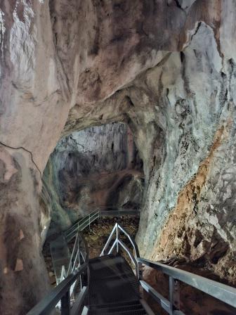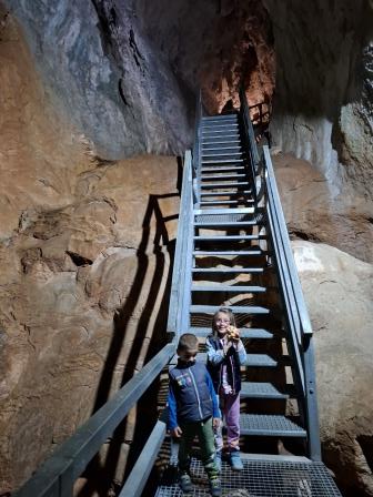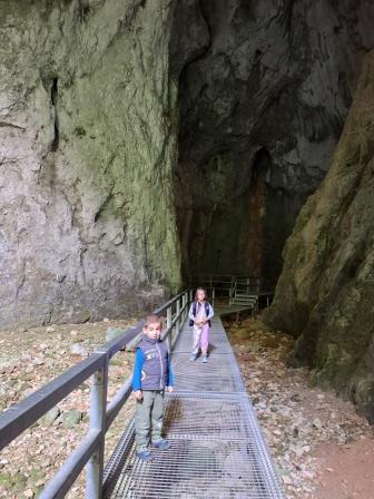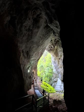 După o tonă de trepte 🤪 ajungem la intrarea în peșteră care este impresionantă la cei 15m înălțime ai săi. Un gard și o poartă metalică opresc accesul nepermis în peșteră. După ce plătim biletele, domnișoara (sau doamna) ghid ne face o scurtă prezentare a peșterii după care ne lasă să explorăm în voie 😍. Spre dezamăgirea mea suntem anunțați de la intrare că anul acesta cascada s-a format doar în luna februarie deci acum (iunie 2024) nu vom vedea nici un râu subteran.