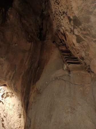 După aproximativ 50m, galeria cotește spre stânga și ajungem la scara ce urcă pragul de 6m înălțime pe lângă cascadă, când aceasta este prezentă.