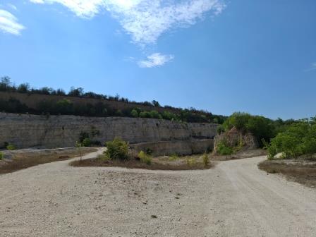 Drumul trece pe lângă Cariera Canaraua Fetei-Băneasa. Se ajunge la un moment dat la o intersecție în dreptul peretelui de extracție a pietrei ce era folosită la carieră. De aici se merge spre dreapta urmărind indicatorul spre Mănăstirea Sf. Gherman.