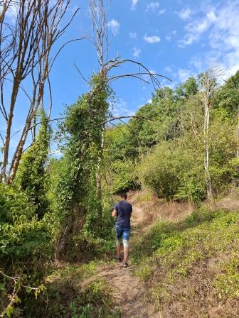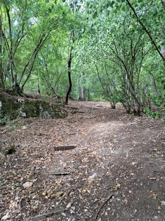 Pentru aproximativ 5 minute de mers drumul este drept după care urcă spre dreapta prin pădure. Nu există nici un fel de indicator, dar te poți lua după urmele unor trepte în pământ.
