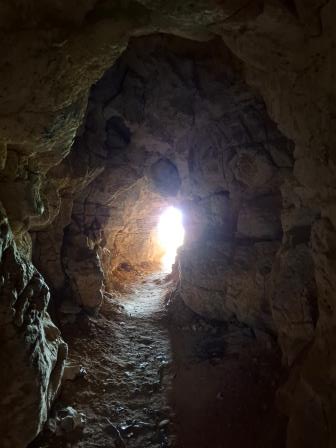 La un moment dat se ajunge la un fel de răscruce unde trebuie să ții stânga până ajungi la un fel de peșteră mică. Fix în acea peșteră trebuie să intri 😊. Poți și să ocolești prin partea stângă, dar respectiva cărare este îngustă și fix pe marginea prăpastiei. Pe această cărare am fi mers și noi dacă nu intram în acea mică peșteră doar de curiozitate.