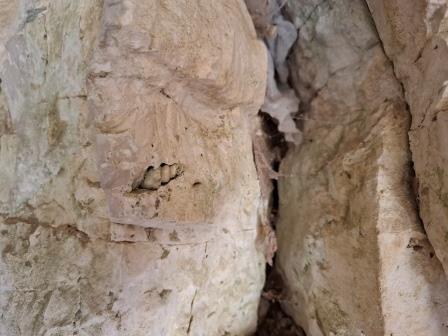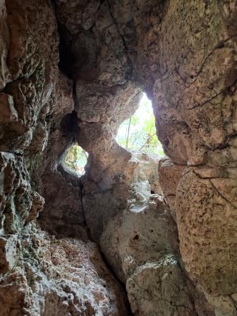 În peșteră am identificat scoici și melci încrustați în pereți sub privirea atentă a ochilor din tavan 😉.