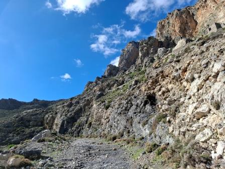 Noi am ajuns la Cheile Kourtaliotiko într-o zi frumoasă și călduroasă de ianuarie 2025. După ce am parcat mașina și ne-am echipat cu încălțăminte de drumeție, am plecat la drum. La prima intersecție de drumuri am ținut stânga continuând să admirăm stâncile din jurul nostru.