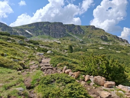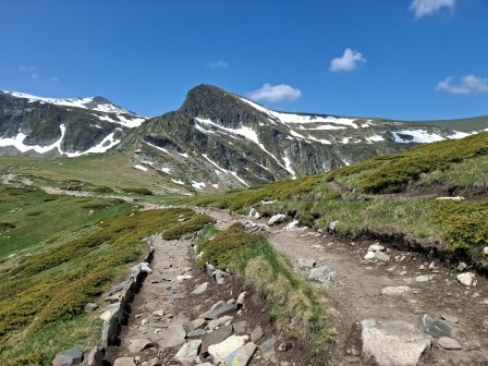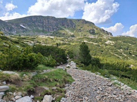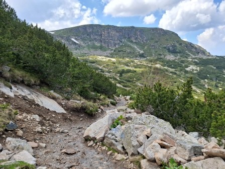 – traseul din partea dreaptă urcă și ajunge la un punct de belvedere spre 3 din lacurile de la Rila ajungând apoi pe malul Lacului Rinichiul;