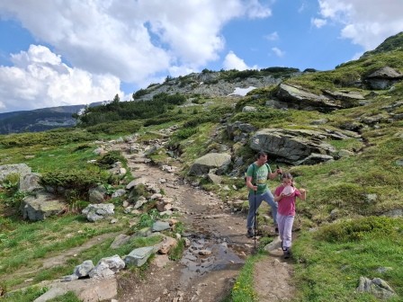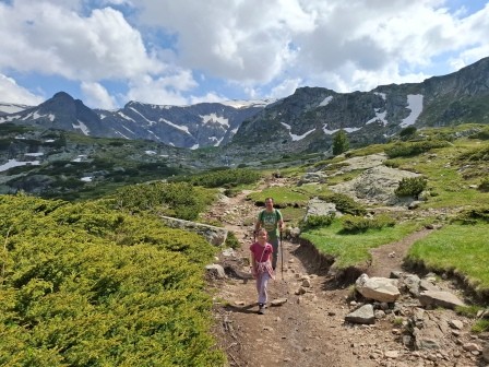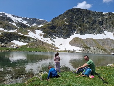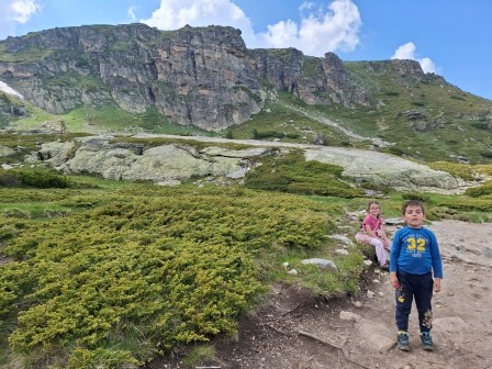Toate cele 7 lacuri Rila pot fi văzute simultan de pe Vârful Ezeren (Езерен връх – 2559 m). Din păcate noi nu am reușit să ajungem până în vârf din lipsa timpului. Traseul spre Vârful Ezeren pornește de lângă Lacul Rinichiul și am stimat că nouă, cu 2 copii mici (de 7 și 4 ani) ne-ar fi luat 2 ore urcarea fiind destul de abrupt traseul.