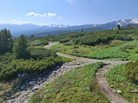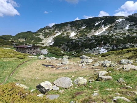 La coborârea din telescaun, la Cabana Lacurile Rila (Rila Lakes Chalet), traseul se desparte în două: