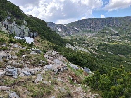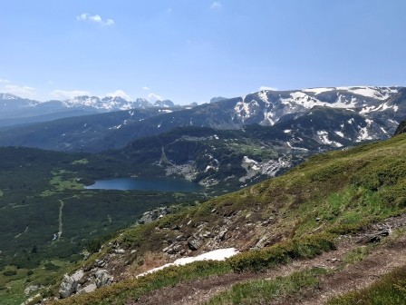 Eu am urmat puțin traseul din partea dreaptă pentru a face 2-3 fotografii și am observat în dreapta, în vale, un alt lac, dar care nu este inclus în circuitul turistic al lacurilor Rila și care nu are nume pe hartă.
