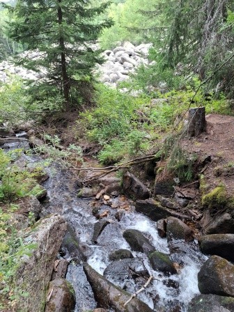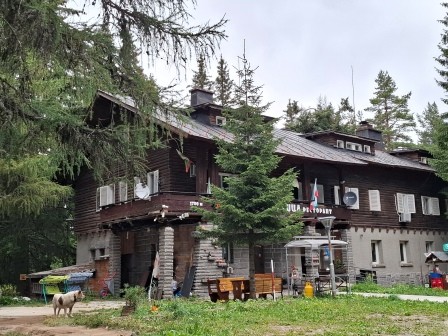 După ce am traversat podul peste un râu (de apă de această dată 😅), cărarea părea că se depărtează de râul de piatră așa că am coborât până la mașină și am condus până la Hotel Boeritsa (alt. 1780 m) până la acest punct de belvedere.