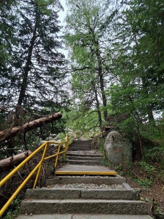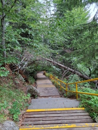 După ce am făcut niște fotografii de la baza râului de piatră, noi am continuat să urcăm pe lângă el pentru aproximativ 30 de minute. Cărarea este amenajată, cu scări și punți din lemn.